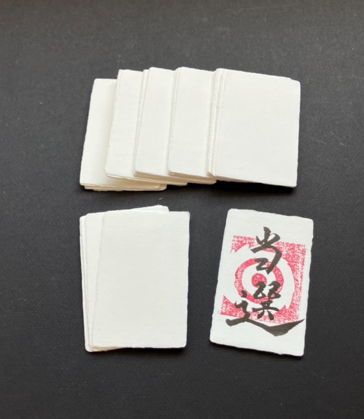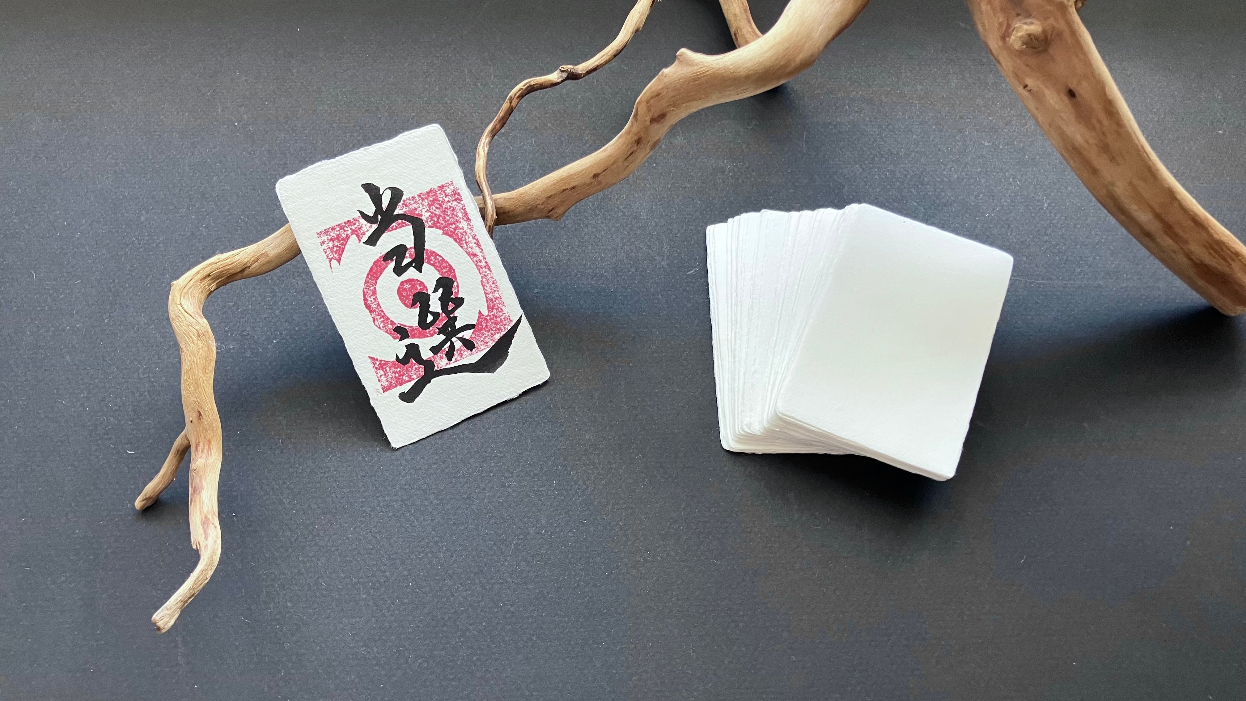 名刺/カード類サイズで、ふちどりは個々に異なります(和紙は手すき和紙「結」等のものに比べ白く滑らかです)。