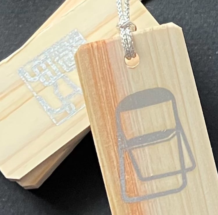 ※大きさ約:たて60mm、よこ30mm、厚さ6mm、ひも穴直径4mm